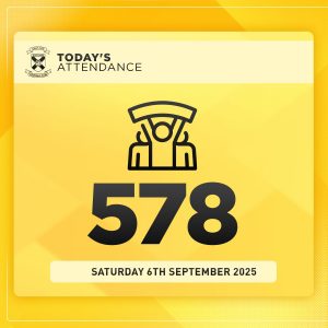 The “Attendance” graphic’s primary Functionality is to communicate the number of spectators at the game. Like the score updates, it avoids Photography and relies on a clean, icon based design. The large, bold number “578” is the main focus, making the data instantly readable. A simple, celebratory icon of three fans is used as a visual element, which adds a subtle, positive touch to the statistic. The Branding & Layout is consistent with the minimalist matchday graphics, with the club crest and date clearly positioned. The yellow gradient background ties it to the rest of the pack. How it fits in the overall picture: This graphic is another recurring and essential component of the matchday wrap up. Its simple design reinforces the brand’s commitment to transparent and professional communication of key match statistics.