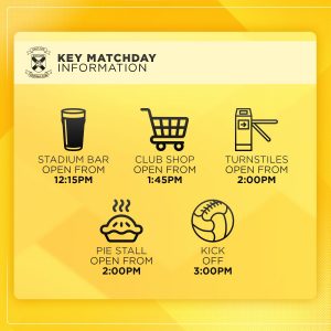 This graphic is designed for fan convenience and provides a clear and concise overview of key matchday timings. Its main Functionality is to inform supporters about when different parts of the stadium open. It does not use Photography, instead relying on a series of simple, elegant icons (a beer glass, a shopping cart, a turnstile, a pie, and a football) to represent each location. This is an excellent design choice as it makes the information universally understandable and easy to scan. The Branding & Layout is clean and well structured, with each icon and its corresponding time clearly laid out. The consistent typography and the yellow background ensure it fits perfectly within the brand. How it fits in the overall picture: This is a fantastic example of a practical, fan-first graphic. It shows that the club’s brand is not just about big moments, but also about providing helpful, everyday information in a professional and accessible manner.