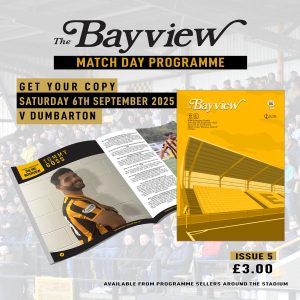 This graphic’s Functionality is to promote the sale of the matchday programme. It is a visually rich and dynamic piece of content. It features a great use of Photography and graphic design, with a photo of the programme itself and a player interview page from within it. This dual image approach effectively shows the product from both the outside and inside, giving fans a clear idea of what they are buying. The Branding & Layout is more complex than the single purpose graphics. The title “The Bayview” uses an elegant script font that gives the programme its own identity, while the other text maintains the club’s standard sans-serif font, creating a nice contrast. How it fits in the overall picture: This graphic demonstrates the brand’s ability to create more detailed and visually interesting promotional content. It effectively links the digital brand to the physical matchday experience, highlighting a key revenue stream while maintaining the club’s overall aesthetic.