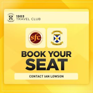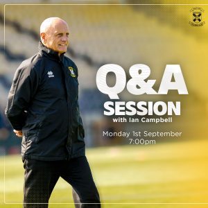 This graphic effectively promotes an off field event with a personal touch. Its main Functionality is to announce a Q&A session, clearly communicating the speaker (Ian Campbell), date and time. The use of a professional Photography shot is a key element here; the image of Ian Campbell on the pitch adds authenticity and a human connection to the event. The photo is well integrated, taking up the left side of the graphic and drawing the viewer’s eye. The Branding & Layout is clean and well structured, with the large, white “Q&A SESSION” text overlaid on the image, making it pop. The date and time are placed below in a legible font, albeit, the light font style may prove difficult to read against the selected background. The East Fife crest is consistently placed in the top right corner. How it fits in the overall picture: This graphic demonstrates the brand’s versatility. It shows that the club can apply its core visual identity, especially the clear, concise typograph, to promotional content that isn’t directly related to a match, helping to build a consistent brand for both on, and off, field activities.
