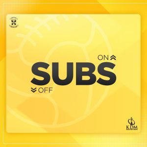 This graphic’s Functionality is to announce a substitution during the game. It is a highly minimalist and functional design. It does not use Photography in order to keep the message clean and direct. The large, central text “SUBS” is highly readable, and the small “ON” and “OFF” with arrows clearly indicates the direction of the change. This is a very efficient use of visual hierarchy. The Branding & Layout is consistent with the in game graphics, featuring the familiar yellow background, and the club and sponsor logos. The lack of clutter ensures the message gets across instantly. How it fits in the overall picture: This graphic is a key piece of the live matchday content. Its design is perfectly aligned with the “Kick Off,” “Half Time,” and “Full Time” graphics, creating a seamless and professional looking live feed of game events.