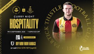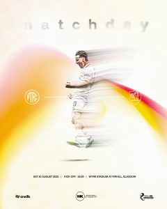 The “Matchday Hospitality” graphic is an excellent example of a detailed promotional piece. Its core Functionality is to provide fans with key information about upcoming hospitality packages, including dates, opponents, and pricing. The Photography effectively captures the welcoming atmosphere of the hospitality suite, showing people enjoying themselves, which serves as a powerful selling point. A subtle filter is applied to the photo, which perfectly aligns it with the club’s color palette. The Branding is strong and clear, prominently featuring the Partick Thistle crest. The fonts used for the text are easy to read and work well with the overall design. The Layout is well structured, dividing the space between the aspirational photo on the left and the clear list of matches and prices on the right. This makes the information easy to scan and digest. How it fits in the overall picture: This graphic showcases the club’s ability to create high quality, professional marketing materials that go beyond just match announcements, effectively promoting commercial aspects of the club to a wider audience.