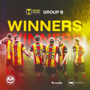 This graphic is a powerful celebration of a team achievement. Its core Functionality is to announce that the team has won its Premier Sports Cup group. The Photography of the players from behind, with their names and numbers visible, creates a powerful sense of unity and shared success. The bold yellow filter over the image makes the players’ red and yellow jerseys stand out. The Branding is loud and clear, with the large “WINNERS” text taking centre stage. The club crest and the Premier Sports Cup logo are also included, adding context and credibility. The Layout is simple but impactful, focusing entirely on the triumphant message. How it fits in the overall picture: This graphic is a prime example of a post match victory announcement. It uses the club’s visual language to evoke pride and celebration, reinforcing a winning mentality and building excitement among the fanbase.