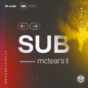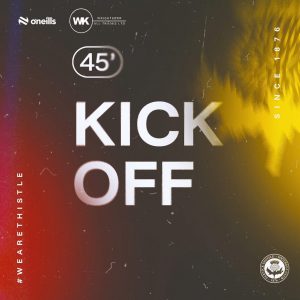 The “Kick Off” graphic is a simple and effective way to signal the start of a match. Its core Functionality is to inform fans that the game is underway. The large, central “KICK OFF” text and the 0′ timestamp are the immediate focal points, making the message instantly clear. Similar to the other in match graphics, it relies on a dynamic, blurred background instead of explicit Photography. The vibrant red and yellow gradient and the textured overlay create a sense of energy and anticipation. The Branding & Layout is perfectly aligned with the other in-match graphics, using the club’s crest, the “Since 1876” detail, and the “#WEARETHISTLE” hashtag. This consistency ensures the graphic is immediately recognisable as part of the club’s matchday suite. How it fits in the overall picture: As the very first in match graphic, it sets the tone for the entire matchday experience on social media. Its consistent design language with the “Half Time” and “Full Time” graphics creates a seamless visual story for the fan following the match online.